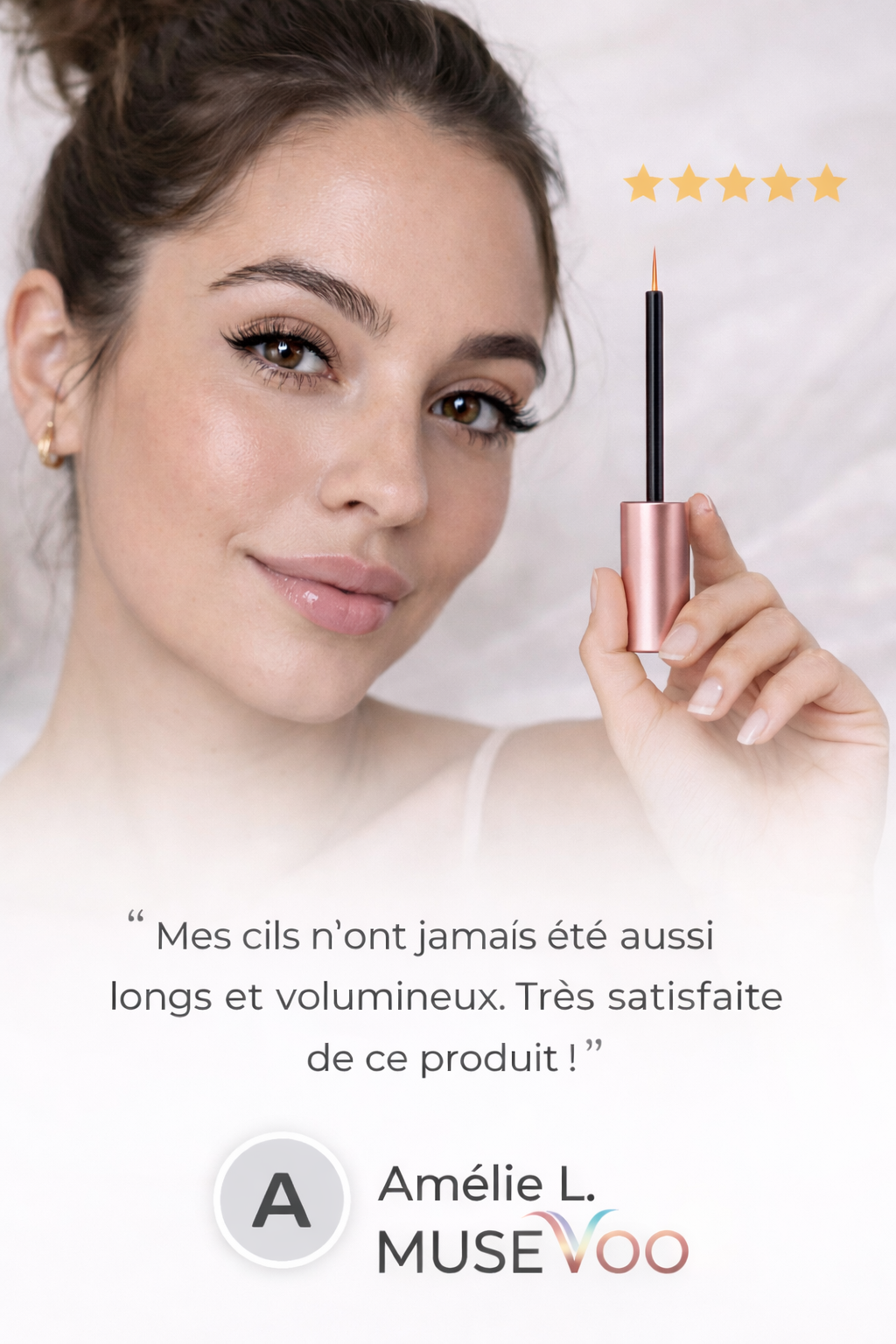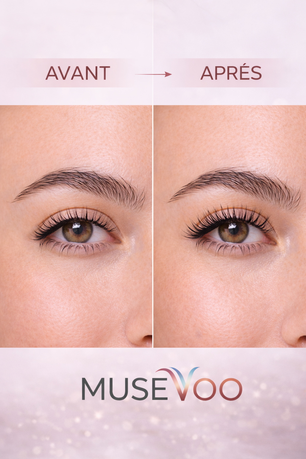 Avec Musevoo, vos cils deviennent visiblement plus longs, plus denses et plus forts — sans maquillage, sans extensions, sans effort.